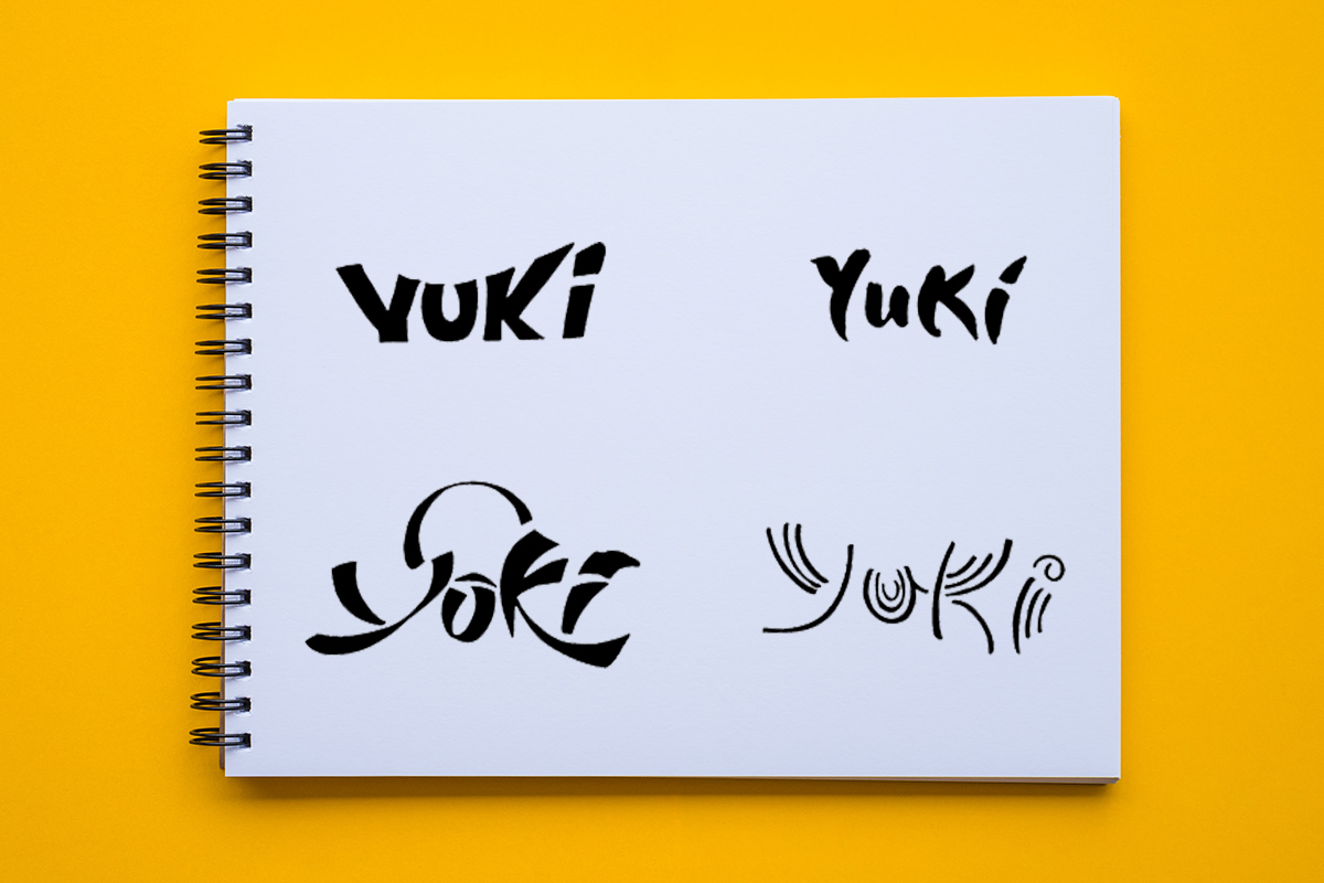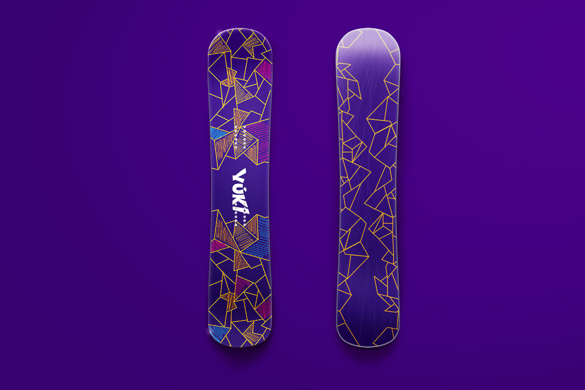 Yúki's brand wants to accelerate their customer's path and flip a 180° turn in the industry. The best way—a unique wordmark based on a snowboard positioned at a 35° angle.